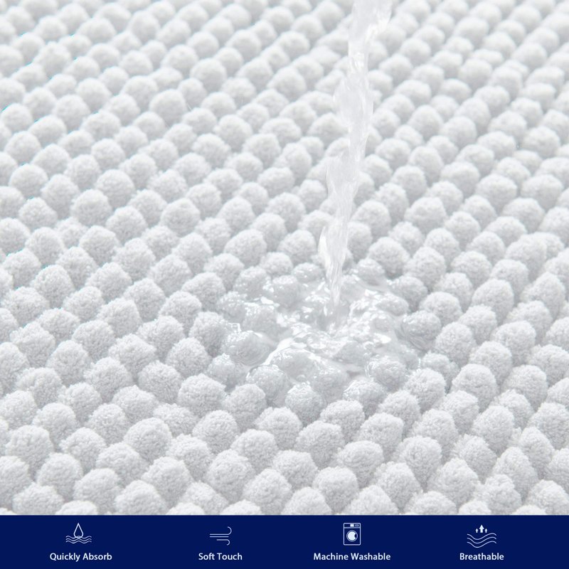 subrtex Bathroom Rugs Chenille Bath Rug Soft Short Plush, Water Absorbent Shower Mat Quick Dry Machine Washable(White,16" x 24")
