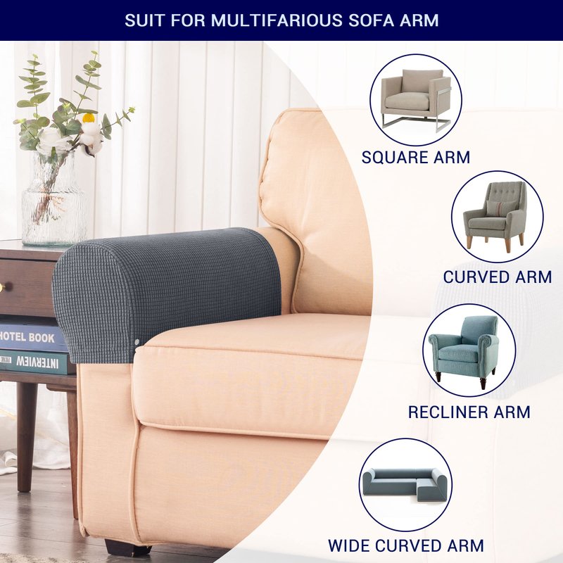 - HIGH QUALITY MATERIAL: Made with spandex premium fabric that is softer, more flexible and easy to stretch. Our armrest covers are suited for more than 90% of fabric chair armrests. Please Note: Our cover is more suitable on fabric sofas.