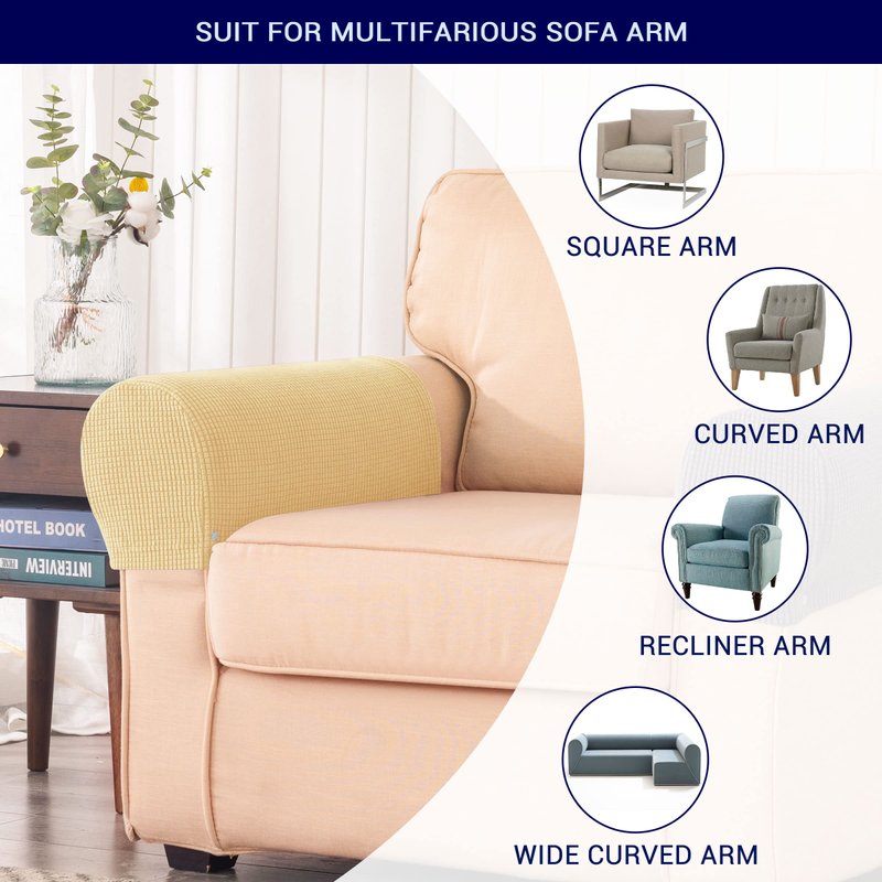 - HIGH QUALITY MATERIAL: Made with spandex premium fabric that is softer, more flexible and easy to stretch. Our armrest covers are suited for more than 90% of fabric chair armrests. Please Note: Our cover is more suitable on fabric sofas.