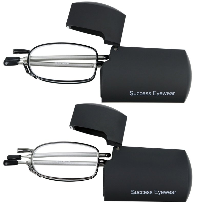 Success Eyewear brings you this great set of folding reading glasses. Set includes 2 pairs for your convenience in two popular colors: black and gunmetal. Keep a pair in your favorite reading spots so you always have one handy.