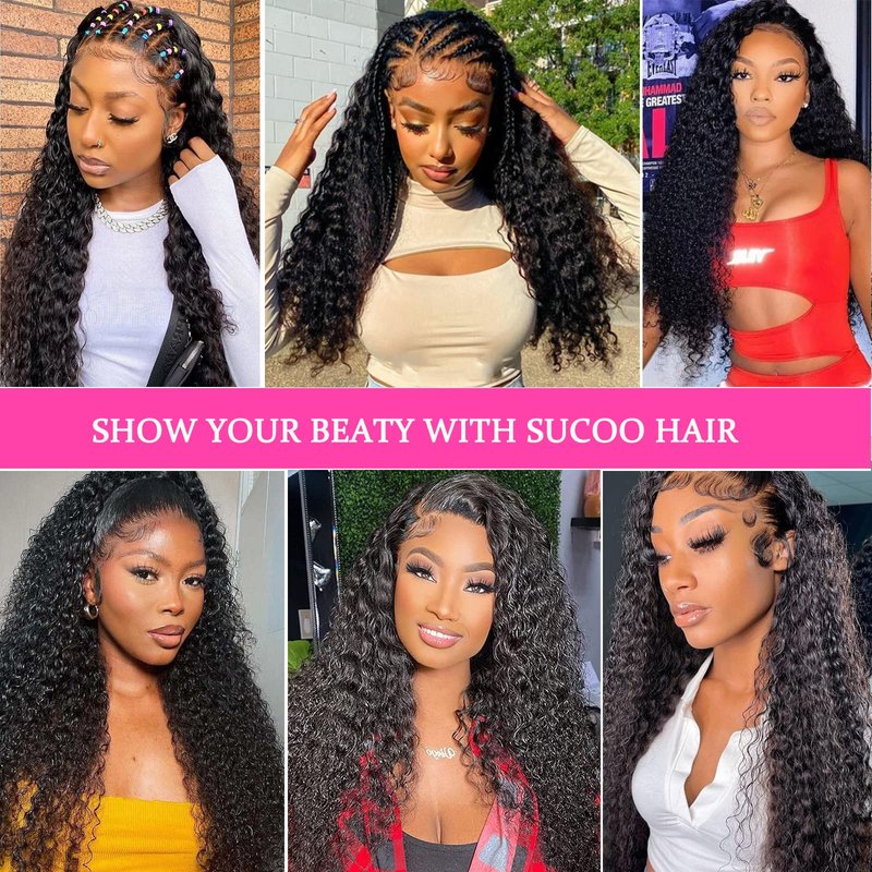 SuCoo 20 Inch Deep Wave Lace Front Wigs Human Hair Pre Plucked with Baby Hair Brazilian Curly Virgin Human Hair Glueless 13x4 HD Transparent Lace Frontal Wigs for Women 150 Density