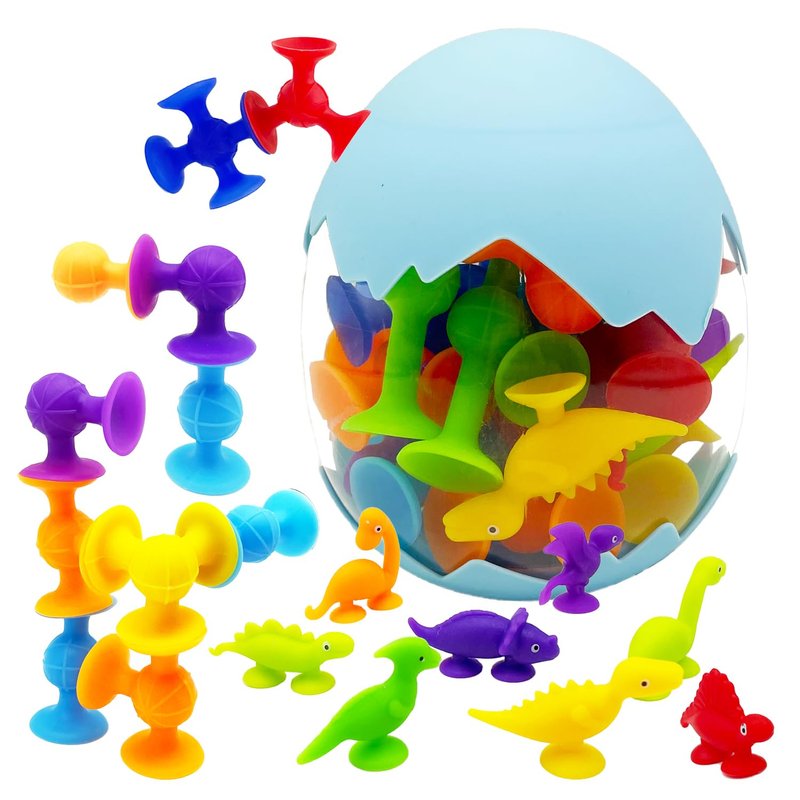 - Preschool Classroom Suction Toys - 26pcs colorful suction toys, Build, stick, connect, and pop! Construction toys for kids learning toys that stick to any smooth surface and to each other.