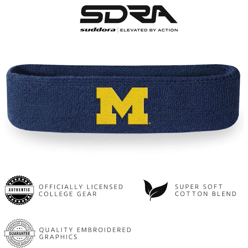 Suddora University of Michigan Headband, Michigan Wolverines Breathable Sweatbands for Sports Events, Non-Slip Cotton Fabric Headband for Football, Tennis, Workout, Costumes & Cosplay