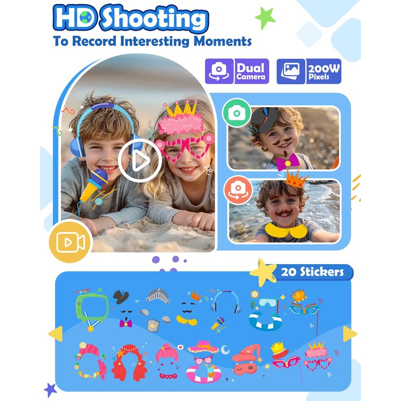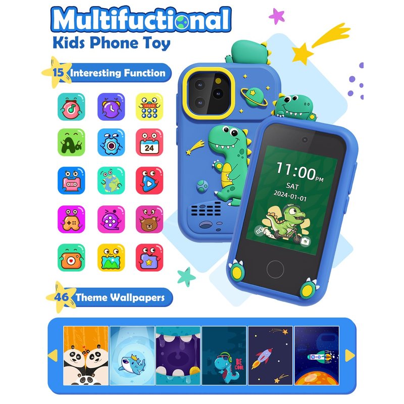 - High-Definition Dual Cameras: Equipped with high-definition dual cameras, built-in 20 cute stickers. Kids toy phone make it easy for kids to take selfies and choose fun photo stickers. Featuring 2.8" IPS screen, the image display is clearer. It’s a great way to capture memorable moments and encourage creativity.The included 8GB card can store more photos and video.