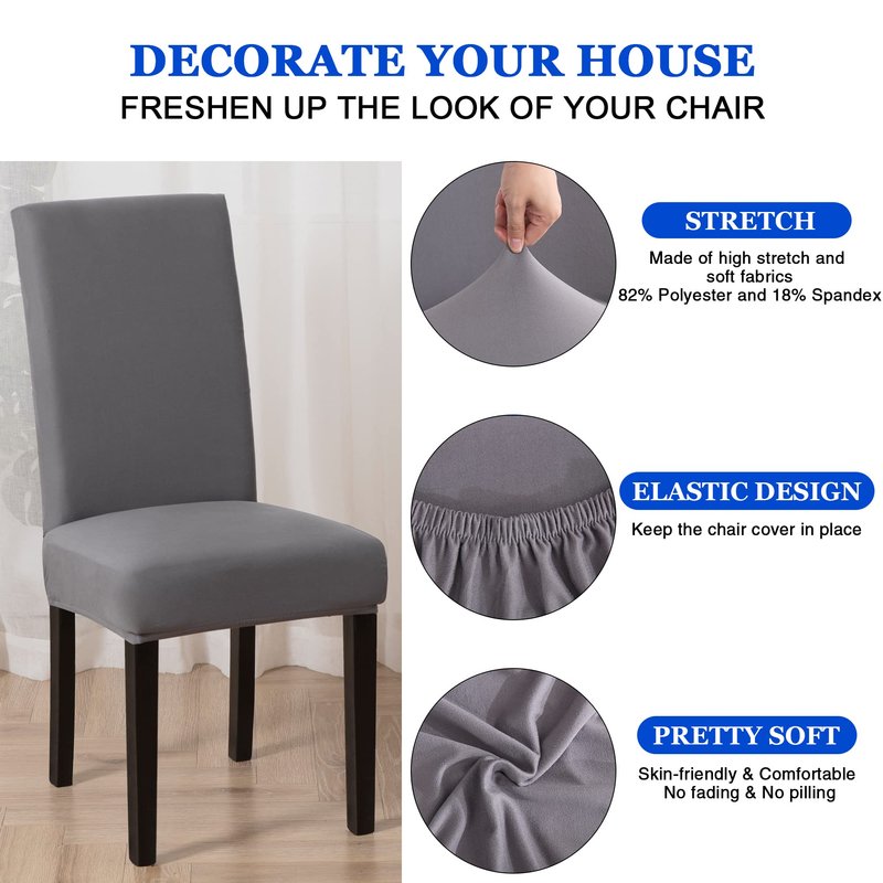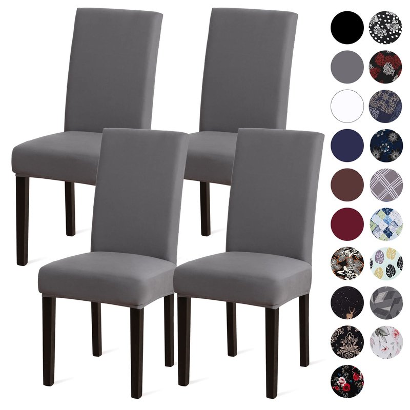 Sufdari Dining Chair Covers,Kitchen Cover,Parsons Slipcover,Spandex Protectors for Room Stretch Chairs Cover Set of 4 -Gray