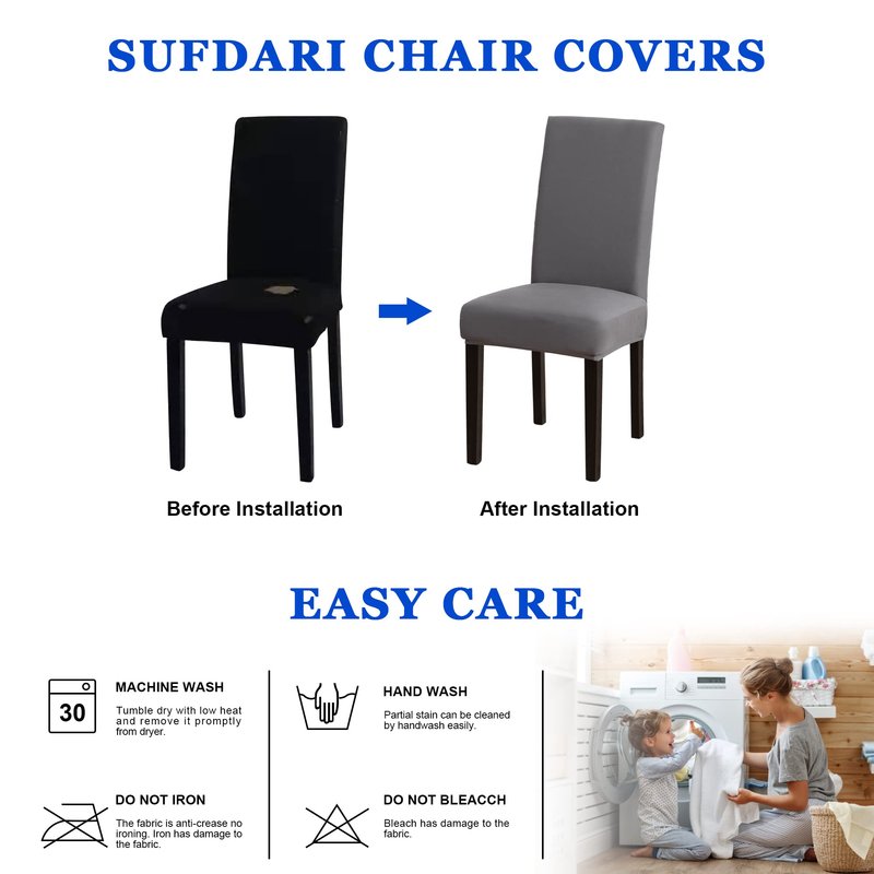 - 【Fabulous Furniture Protector】Sufdari spandex chair protector covers will transform your old chair into brand new and protect your chairs from spills, stains, daily wear and tear, dirts and pets damages, perfect for homes with kids and pets, it's definitely economical and cost-effective home decor.