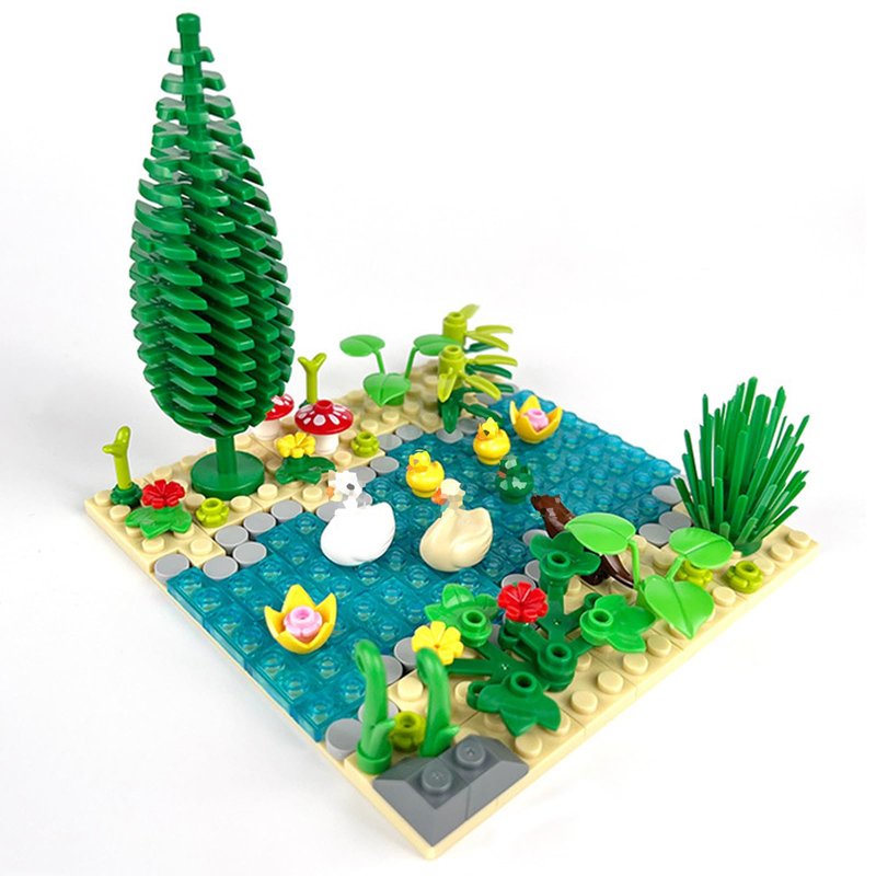 Sufeasdf Waterfalls Pools Zoo Building Block Set B, Farm Animal Building Toys, Bridge Piers, Pools, Trees, Ducks, Waterfalls, Compatible with Lego 853792 Accessory for Ages 6-12