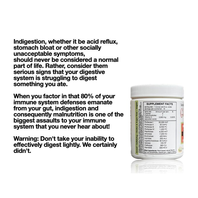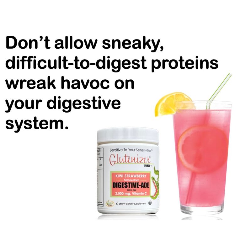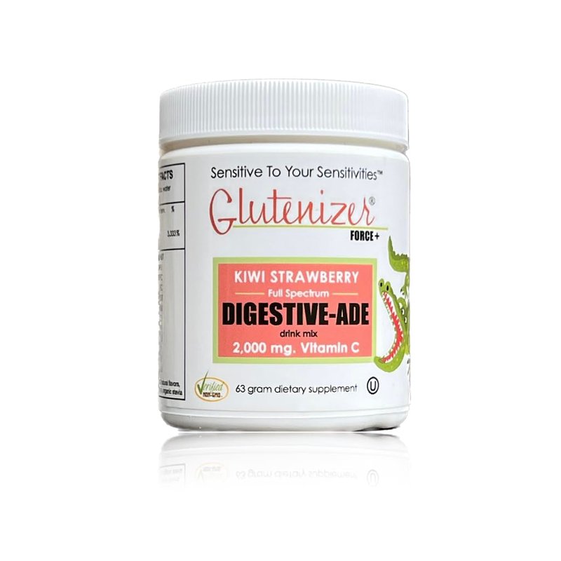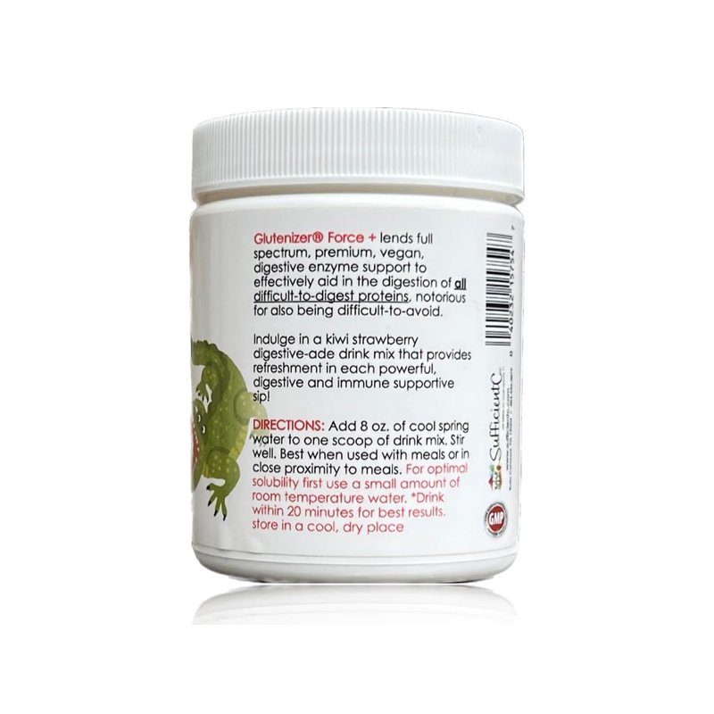 Sufficient C - Glutenizer Force Plus Kiwi-Strawberry Digestive-Ade drink mix --- premium, full spectrum vegan enzymes plus 2,000 mg. gut healing vitamin C - Natural Acid Indigestion Solution --- Bloated Belly / Reflux / Heart Burn / IBS / Leaky Gut, Gluten & Dairy Sensitivity, refreshing digestive aid that supports the digestion of all proteins - refreshing, great tasting solution