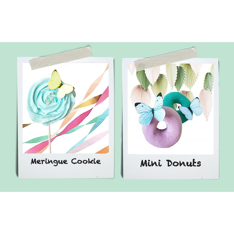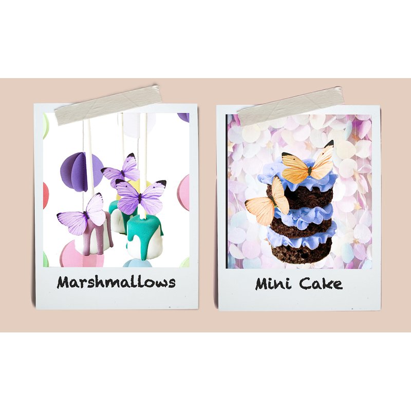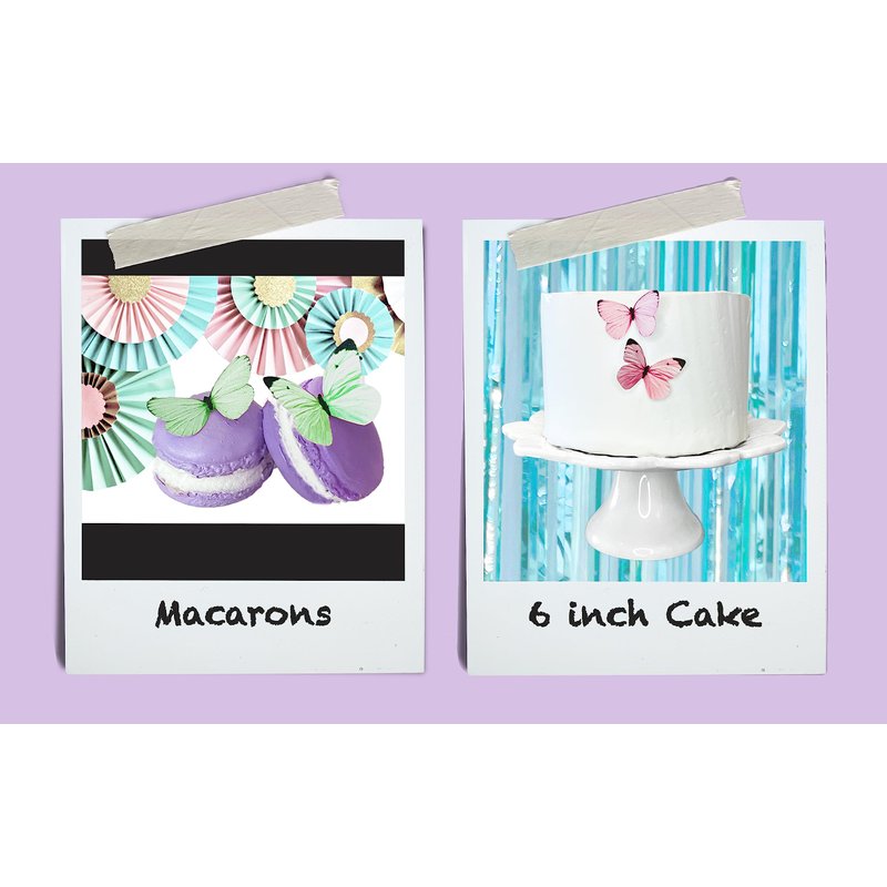 Use regular frosting or corn syrup to adhere to most food items, wine glasses, or serving dishes. Fold up the wings on either side of the body for a fluttering effect. Made of wafer paper (potato starch, vegetable oil, water) and food color. Each butterfly is handmade to order and has been brushed with a coat of vanilla. Pre-cut and ready to use on all your baked goods. Use within 4 months of receiving them. Store in the vacuum sealed packaging they arrive in. Each item is sealed for optimum freshness. Do not refrigerate.