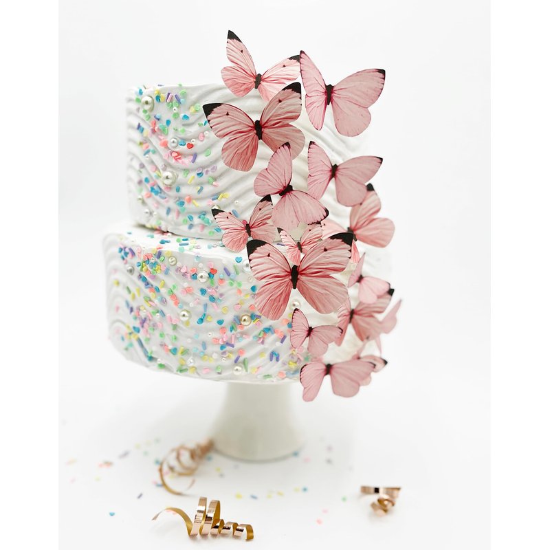 Sugar Robot Inc. Edible Butterflies Assorted Size Pastel Premium Crafted Made in the USA - Cake and Cupcake Toppers, Decoration (pink)