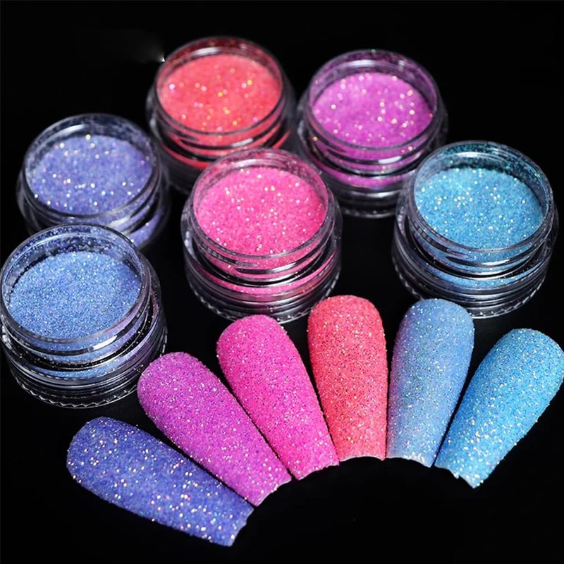Sugar Sand Neon Nail Art Glitter Powder Shiny Effect Candy Glitter Flakes Pigment Dust Gel Polish Manicure Accessories for Christmas Valentine's Day DIY Crafts Supplies