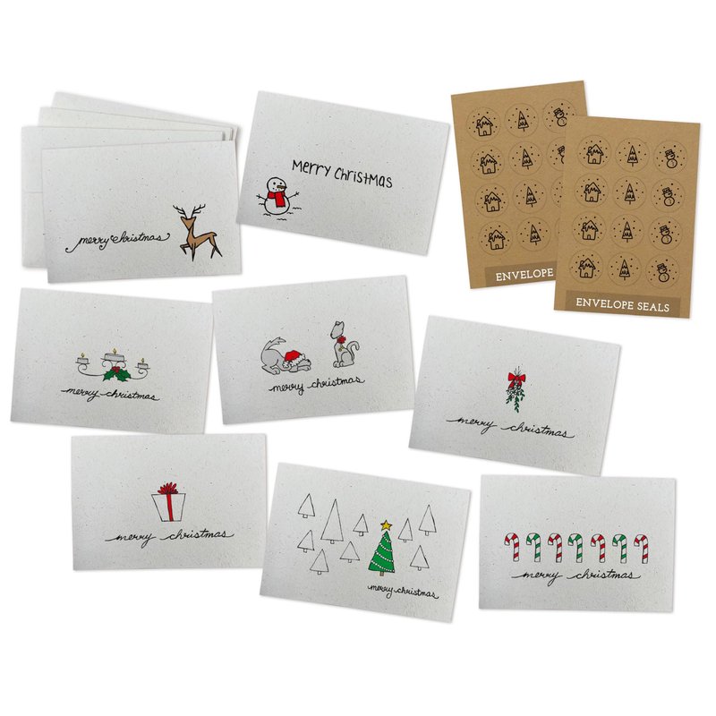 - MINIMAL & MODERN - Assortment of eight (8) Christmas Cards Designs - 3 of each design - 24 Christmas Cards with Envelopes & Assorted Kraft Sticker Envelope Seals