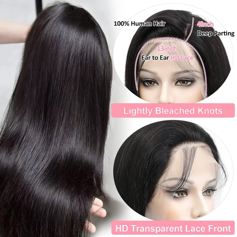 - 【Straight Lace Front Wigs Human Hair Material】100% Brazilian Virgin Lace Frontal Human Hair Wigs, Unprocessed Brazilian Virgin Hair Cut from The Head of a Young Girl, Soft and Natural, Healthy and Vibrant, Soft and Comfortable Against Skin.
