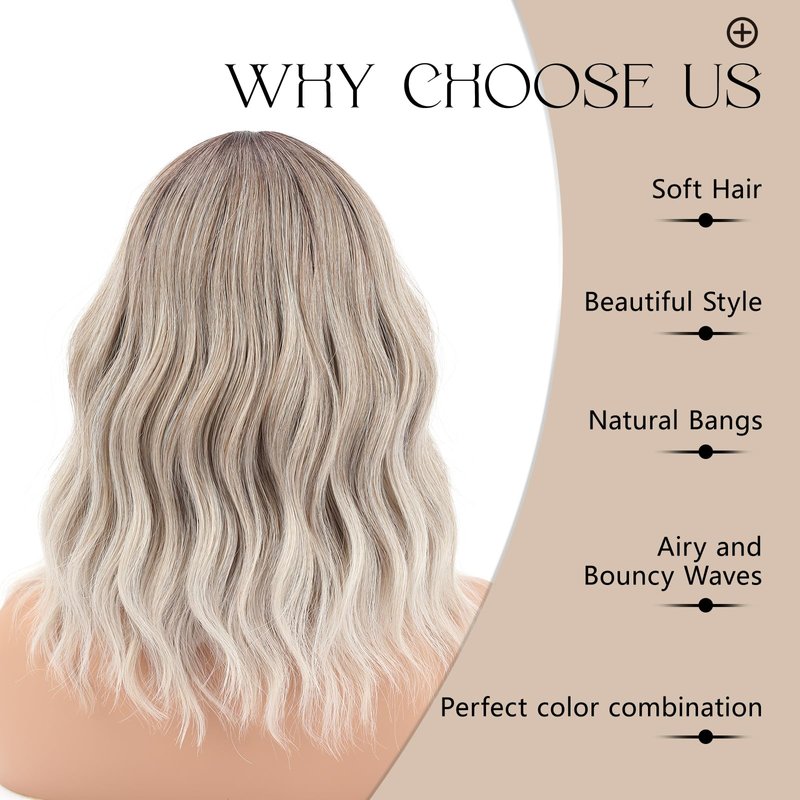 - 2、☀Hairstyle: Shoulder-length bob with bangs,the thickness and length of the bangs are moderate,making the wig look more Realistic and Cute.You can freely trim and shape the bangs to your favorite style.