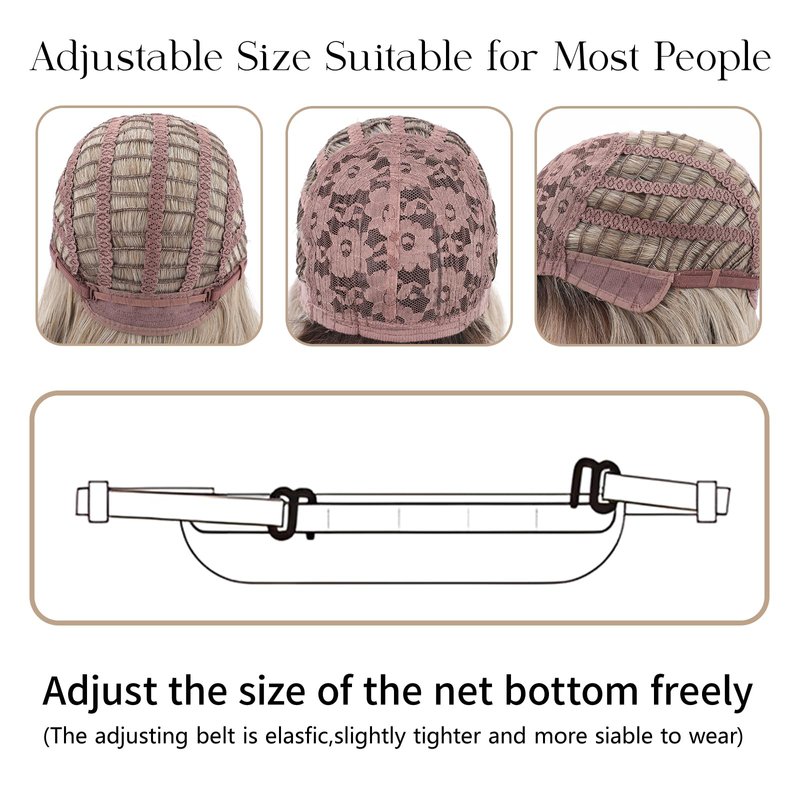 - 4、☀Humanity Design:The size of this bob wavy wig is 14”, Weight is 190g,It is ergonomically designed to make it easy for you to wear a wig.There are two adjustable straps, which can be adjusted freely according to the head circumference,suitable for almost any head shape. Cap internal is used open-welf structure and Soft breathable net,allows your scalp to breathe freely.