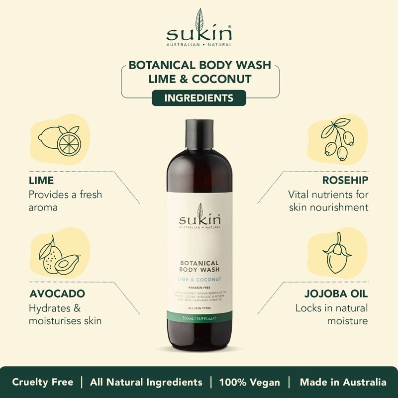 Sukin Botanical Body Wash, Lime & Coconut, 16.9 Fl Oz