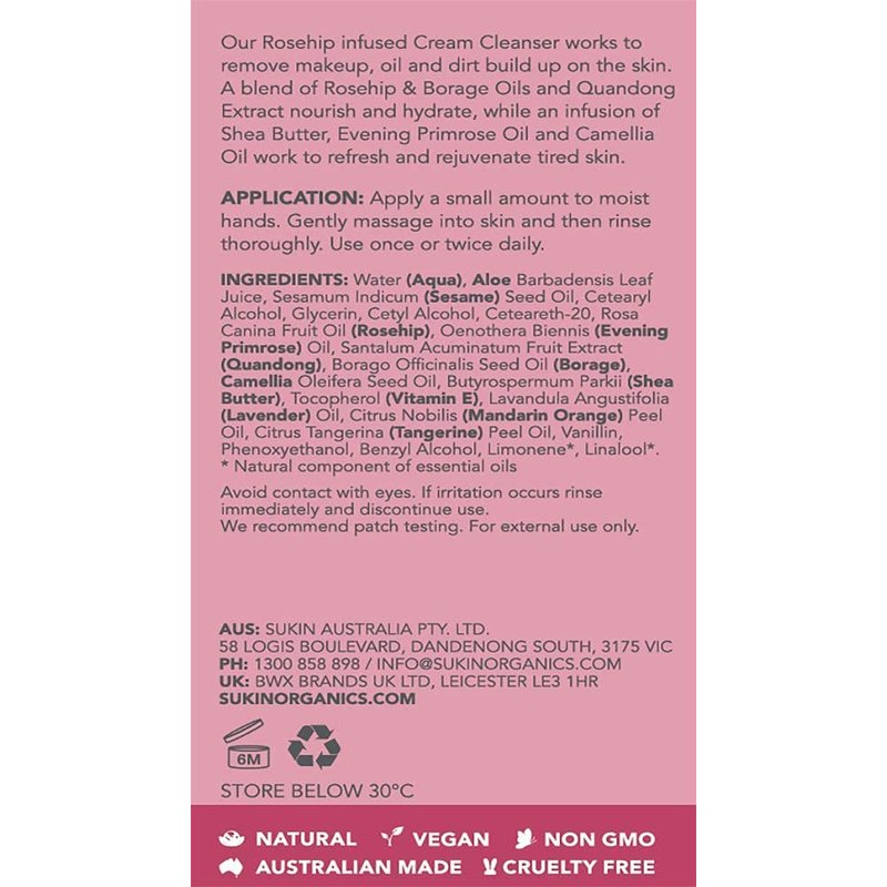 - Sukin Rosehip Nourishing Cream Cleanser, 4.23 Ounce