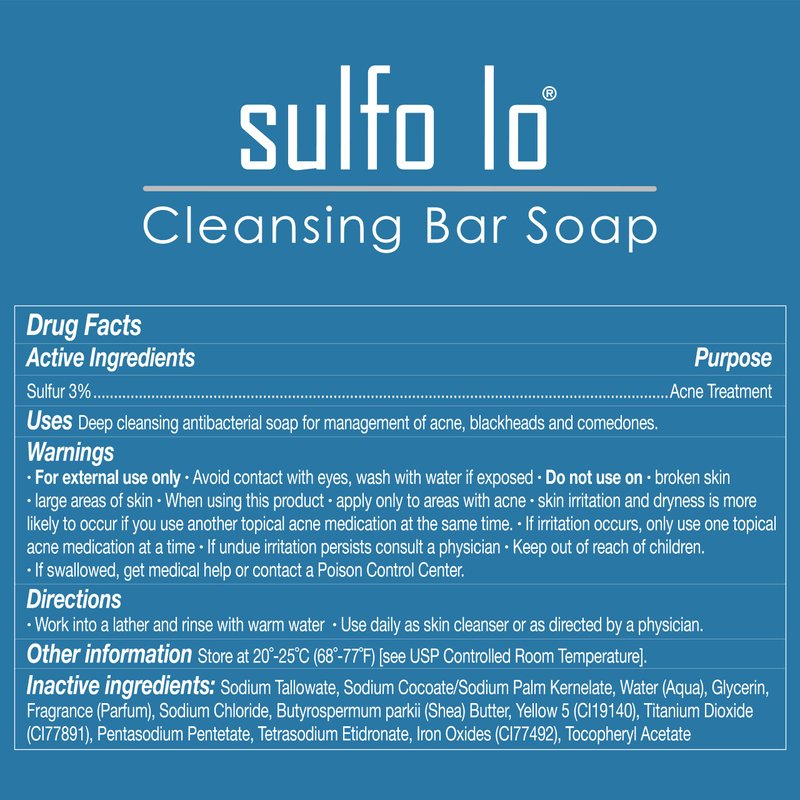 - SULFUR BASE - Sulfo Lo skin cleansing bar soap contains 3% sulfur for a deep topical clean that leaves your skin feeling good and looking fresh.