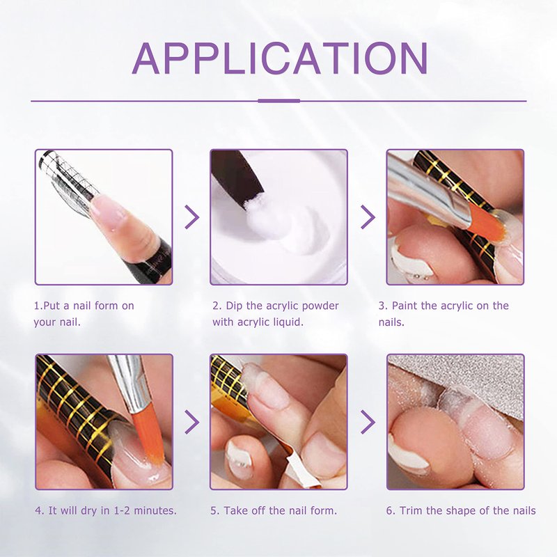 Easy Application And Sculpting: Used acrylic nails powders & liquids to do nail extension,Nail carving or only being a clear overlay! Fortified for superior adhesion,Can be used on natural nails, false nails, nail tips. Provides a fantastic natural look for your nails.
