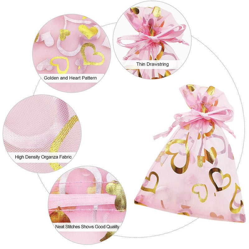 - Package Includes: 100 x gold heart organza gift bags