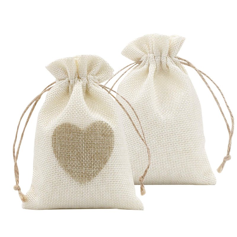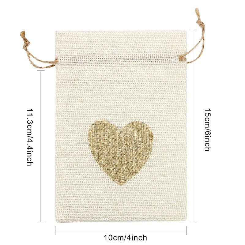 SumDirect 4x6Inch Lovely Heart Burlap Gift Bags for Holding Candies Gifts Jewelry or Business Samples Details: Color:Beige Material: Jute drawstring and burlap bags Size:10x15cm / 4x6Inch Quantity: 36pcs