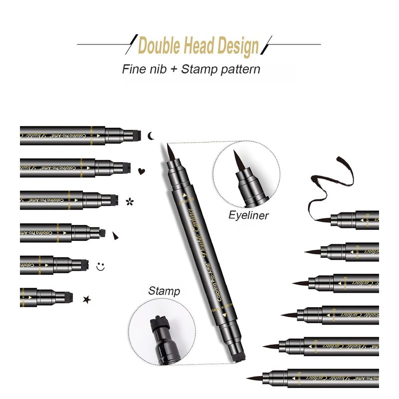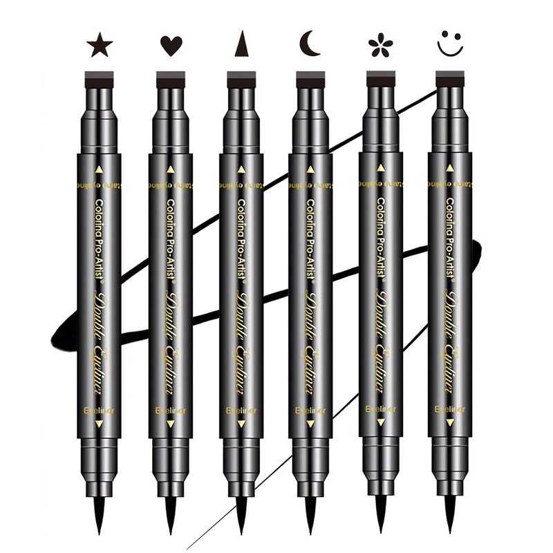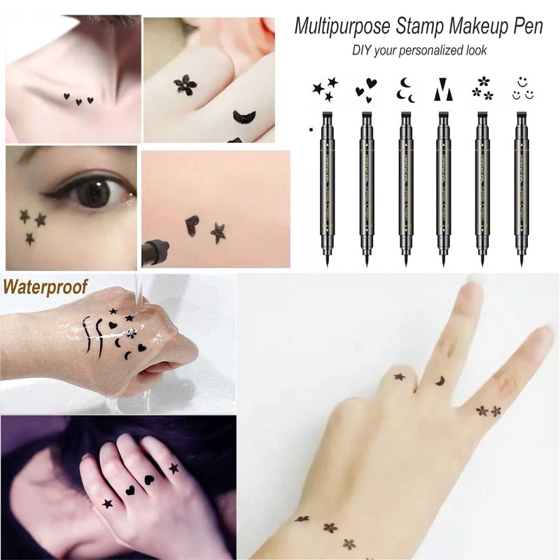 - 【6 Different Shapes Stamp Eyeliner】6 Different shapes stamps eyeliner pen set are 6 patterns to choose, including Triangle/Star/Moon/Heart/Flower/Smiley shaped for beautiful decoration, add more charming embellishment to your eye makeup.