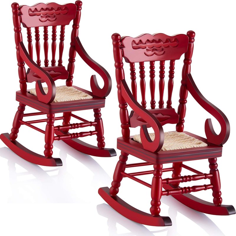 Sumind 2 Pieces Doll House Wooden Chairs 1:12 Christmas Dollhouse Model Chairs Mini Dollhouse Wooden Rocking Chairs for Dollhouse Accessories Furniture Decoration