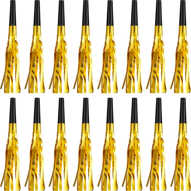 Sumind 24 Pieces Gold Noise Makers Glitter Noise Makers Metallic Fringed Party Blowers for Adults Birthday Graduation Sporting Events 2024 New Years Party Favor Supplies