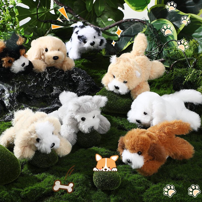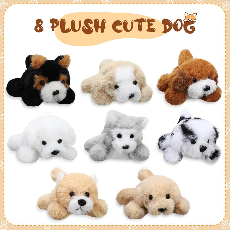 Sumind 8 Pieces Plush Dogs 5 Inch Stuffed Animals Bulk Assorted Cute Stuffed Dogs Small Animal Plush Toys for Girls Boys Graduation Valentine School Classroom Party Supplies Favors(Long Hair Dog)