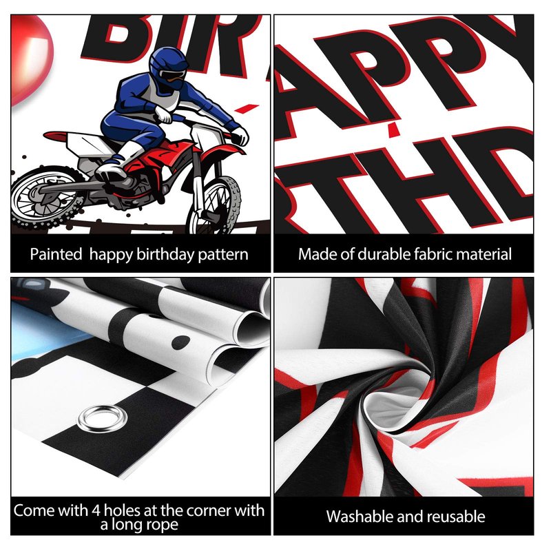 - Large photo backdrop: the fabric dirt bike racing banner measures approx. 185 x 110 cm/ 72.8 x 43.3 inch, large enough for catching people's attention and serving as a photo prop in a dirt bike party
