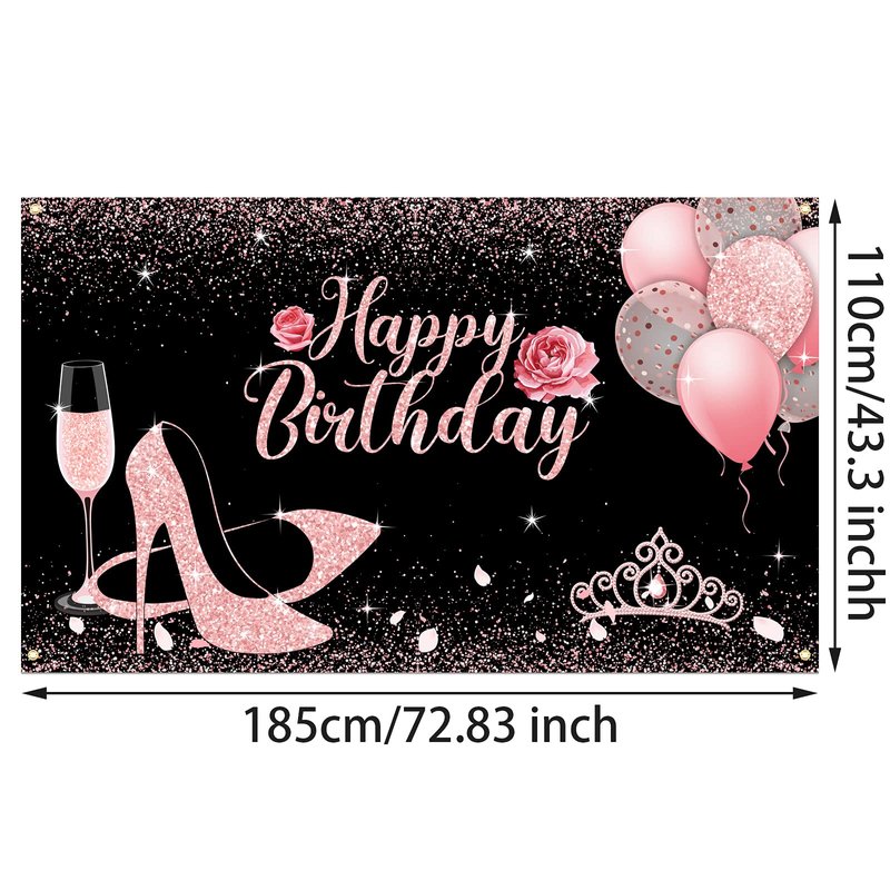 - Delicate and chic design: this fabric pink birthday background banner is designed with [Happy Birthday] letters, high-heeled shoes, balloons, wine glass, rose, crown, glitter confetti, and so on, attractive and charming, filled with a pleasant atmosphere, leaving a good impression on your guests