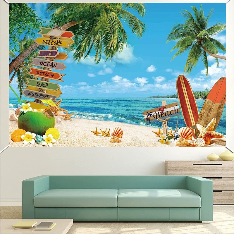 Summer Beach Backdrop Summer Hawaiian Beach Backdrop Seaside Surfboard Portrait Photography Background Aloha Luau Birthday Party Decorations Supplies