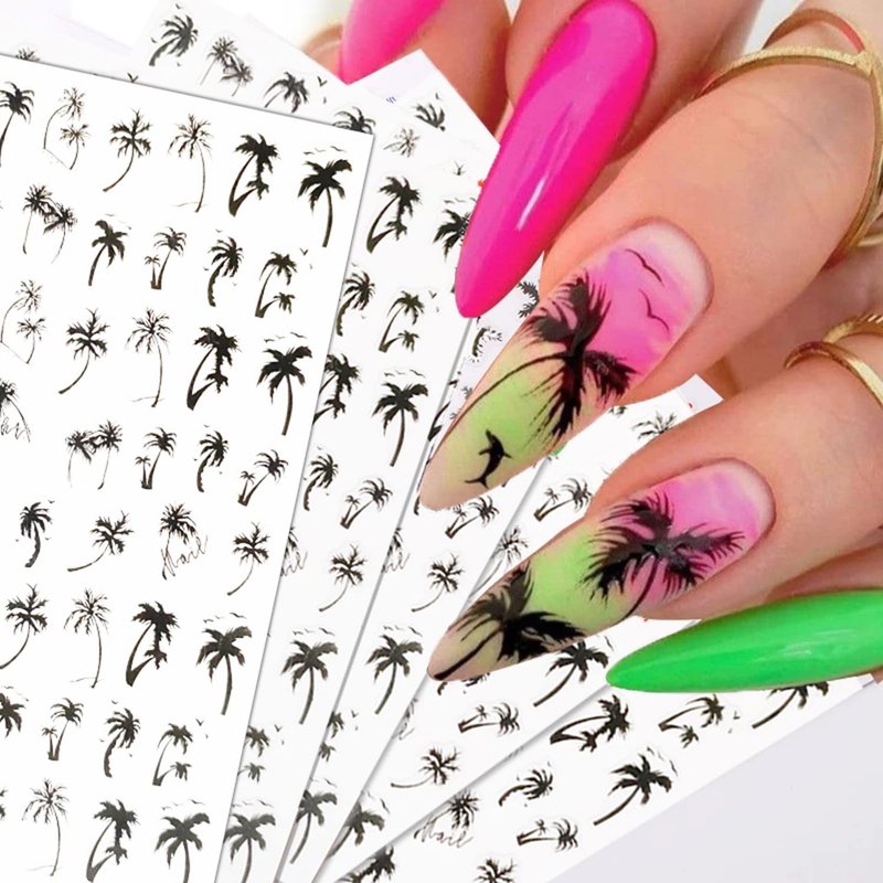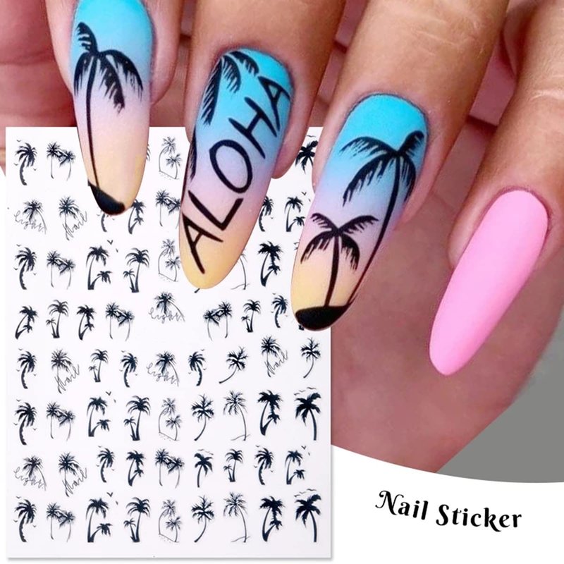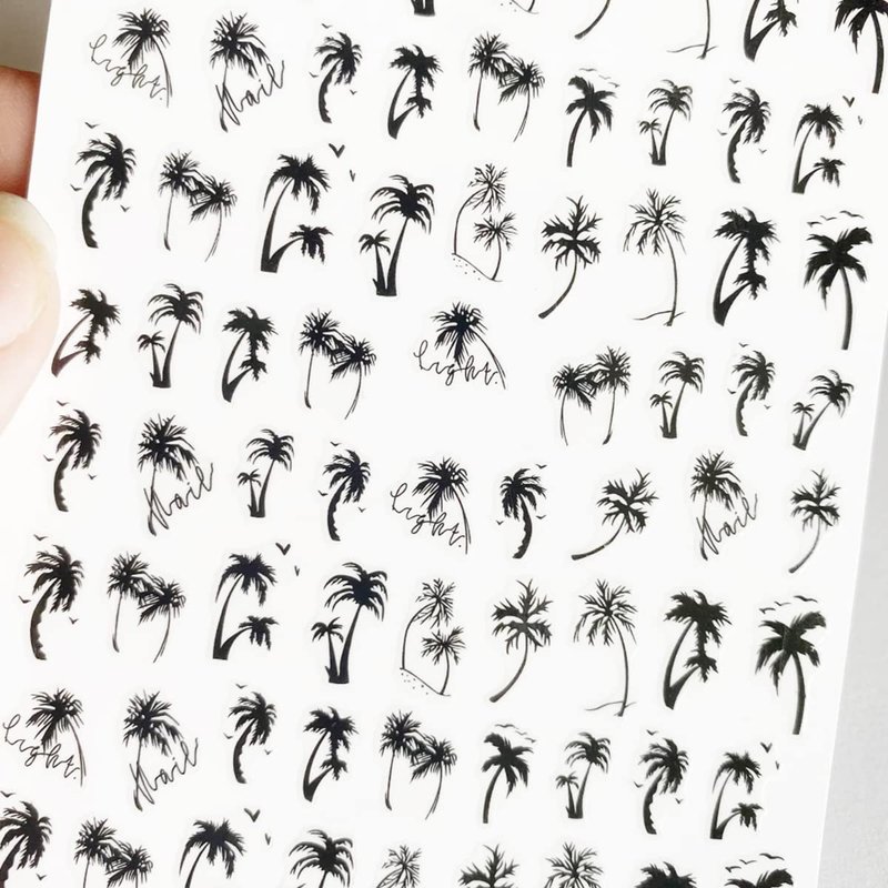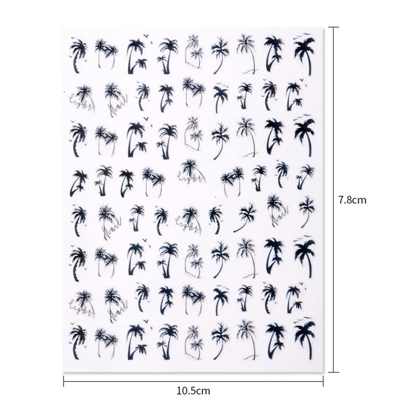 - 🏖️🌴Package includes: 6Sheets palm tree nails decals with 3d self-adhesive design. This nail sticker is the most convenient way to decorate your nail. Fantastic Gift for Friends and Family who love to do nail art.