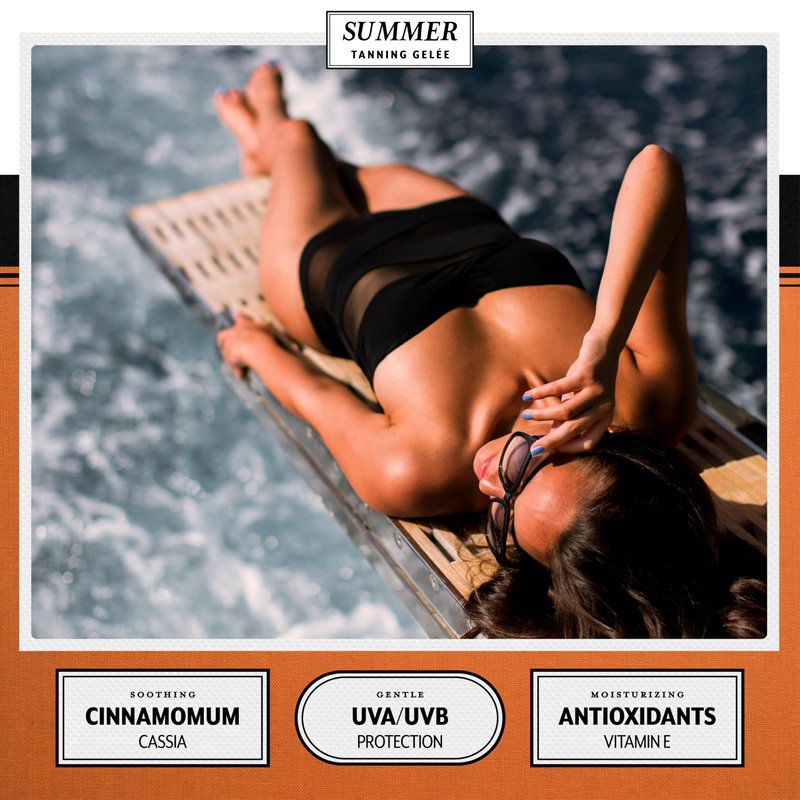 - Enhanced Tanning Formula: Achieve a deeper, natural-looking tan with our SPF 4 Gelée, combining sun protection with Cinnamomum Cassia Oil for a luxurious tanning experience.