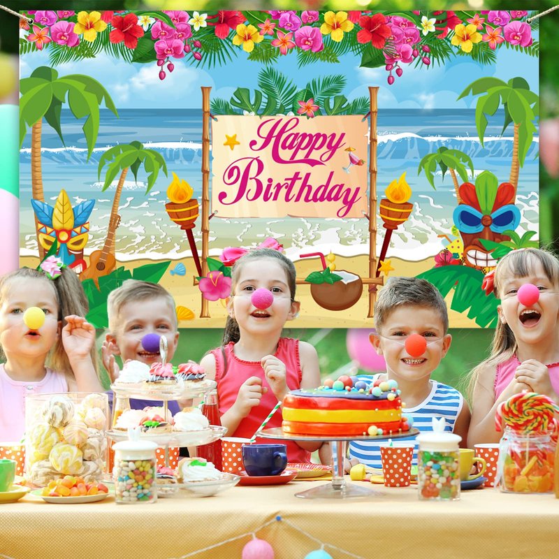 - Easy to use :This hawaiian birthday backdrop is punched at the four corners with a 6-meter white long rope, which is very convenient to hang through the copper grommet and suitable for indoor or outdoor wall, playground, etc.