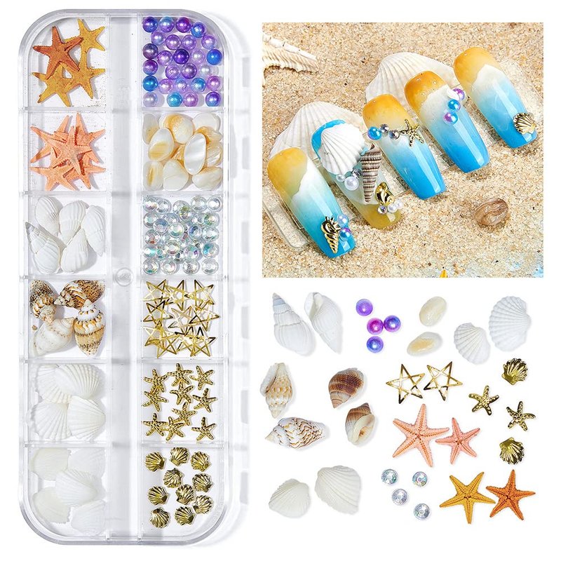 - 【Safety and Special Surprises】: Seashell nail charms are safe, environmentally friendly, non-polluting and harmless. Does not cause any damage to the skin, even sensitive skin, each product is packaged in a separate grid for easy storage and carrying. You only need to open the pattern grid to be decorated.