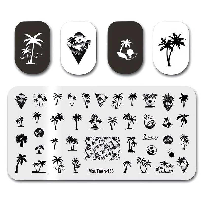 Summer Nail Art Stamping Plates Palm Coconut Tree Pattern Designs Nail Stamp Templates Holiday Nail Decorations DIY Stainless Steel Nail Image Polish Template Nail Supplies for Women
