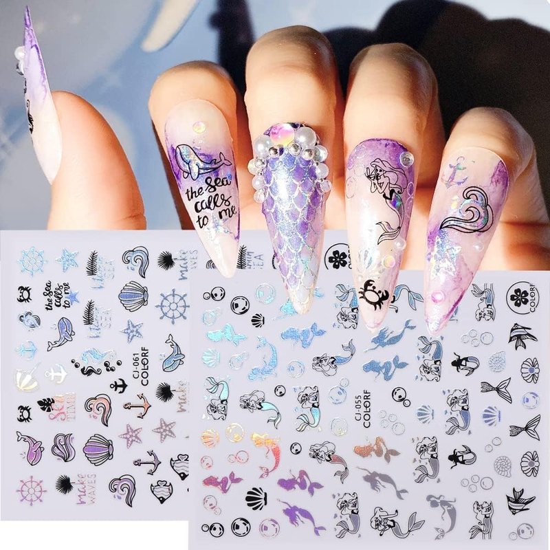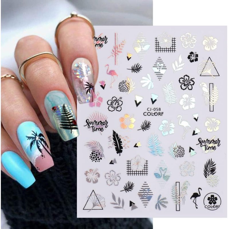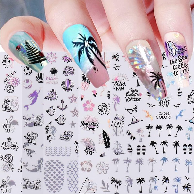 - 🌴Summer Nail Stickers: You will receive 8 Sheets different patterns of holographic palm tree nail stickers, with palm tree, mermaid, beach,ocean animal, tropical, and other summer design, bringing you a different kind of enthusiasm for summer.