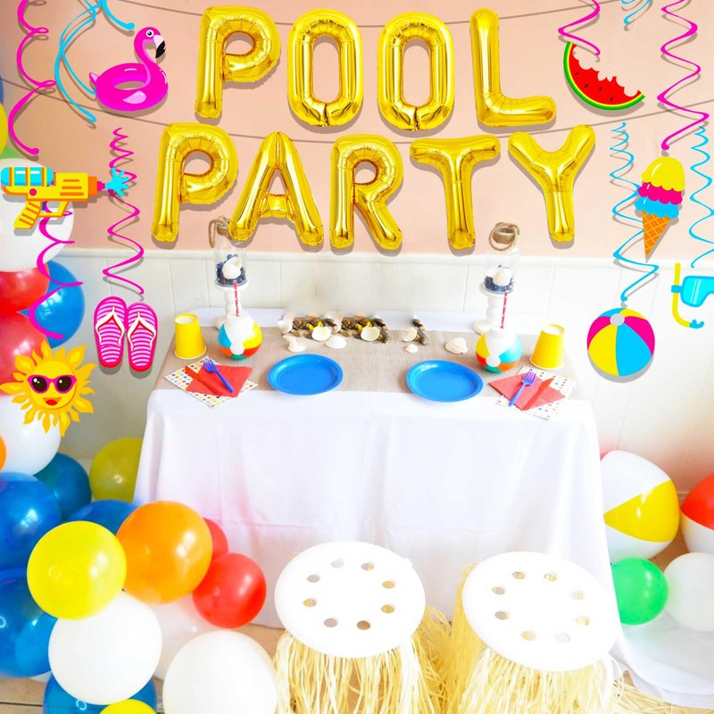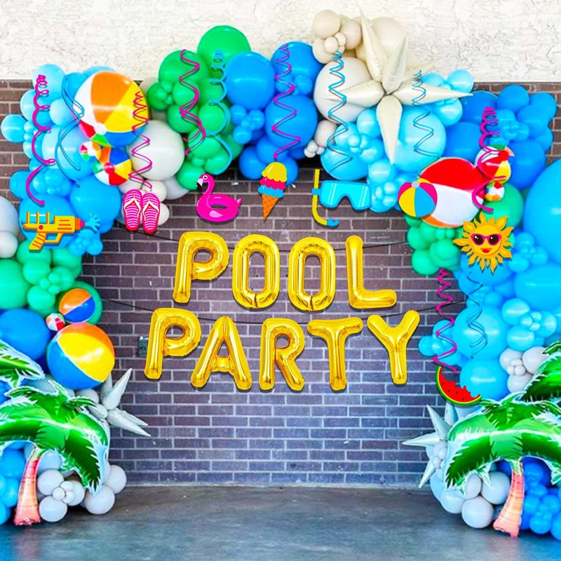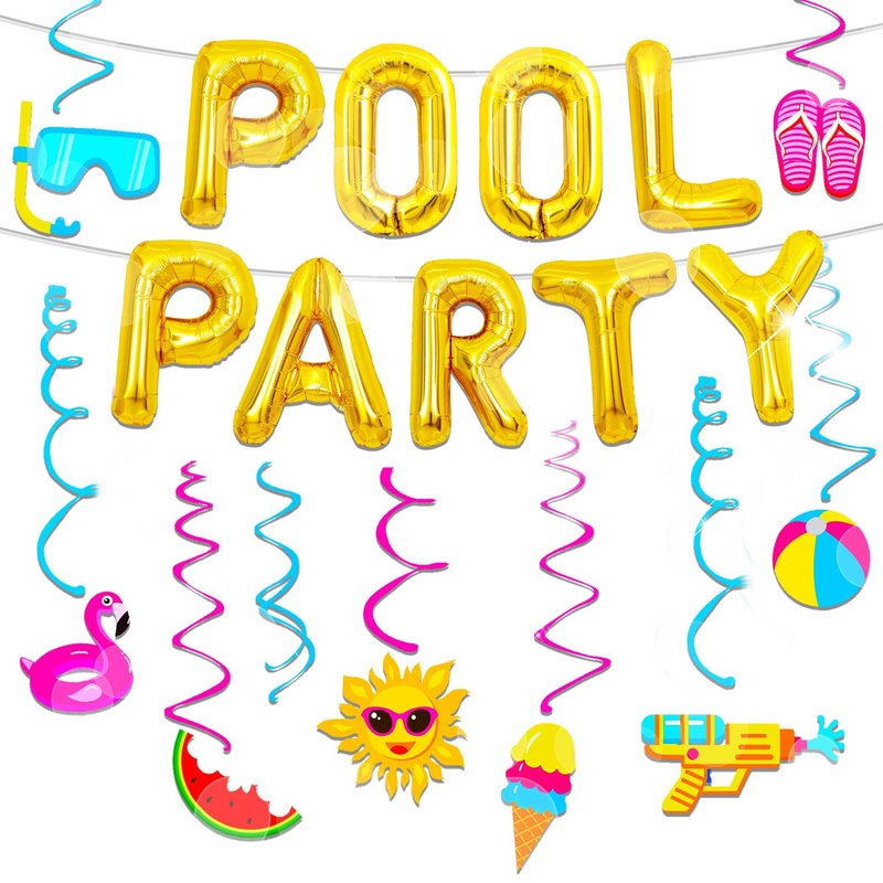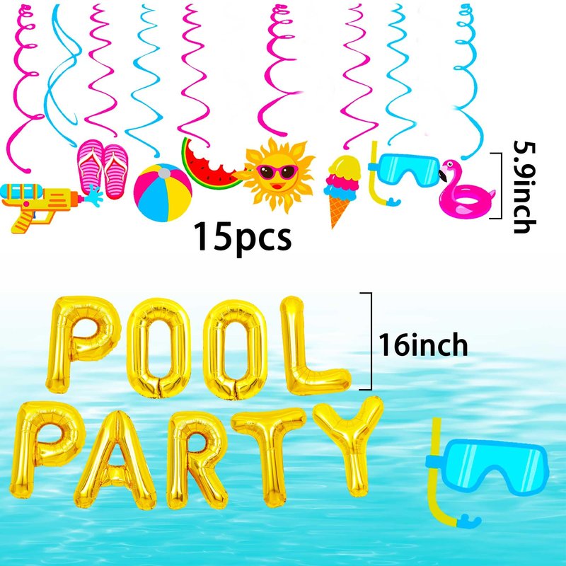 - 【Products include】 1 x “ Pool Party “ Balloon, 15 x Pool Party hanging Swirl Decoration