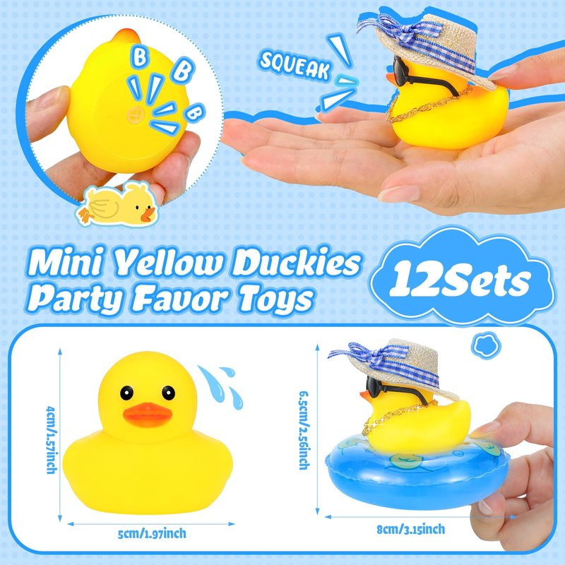 Summer Rubber Duck Mini Yellow Duck Bath Toys Duckies Car Dashboard Decorations with Mini Sun Hat Swim Ring Necklace and Sunglasses for Bathtub Shower Birthday Swimming (12 Set )