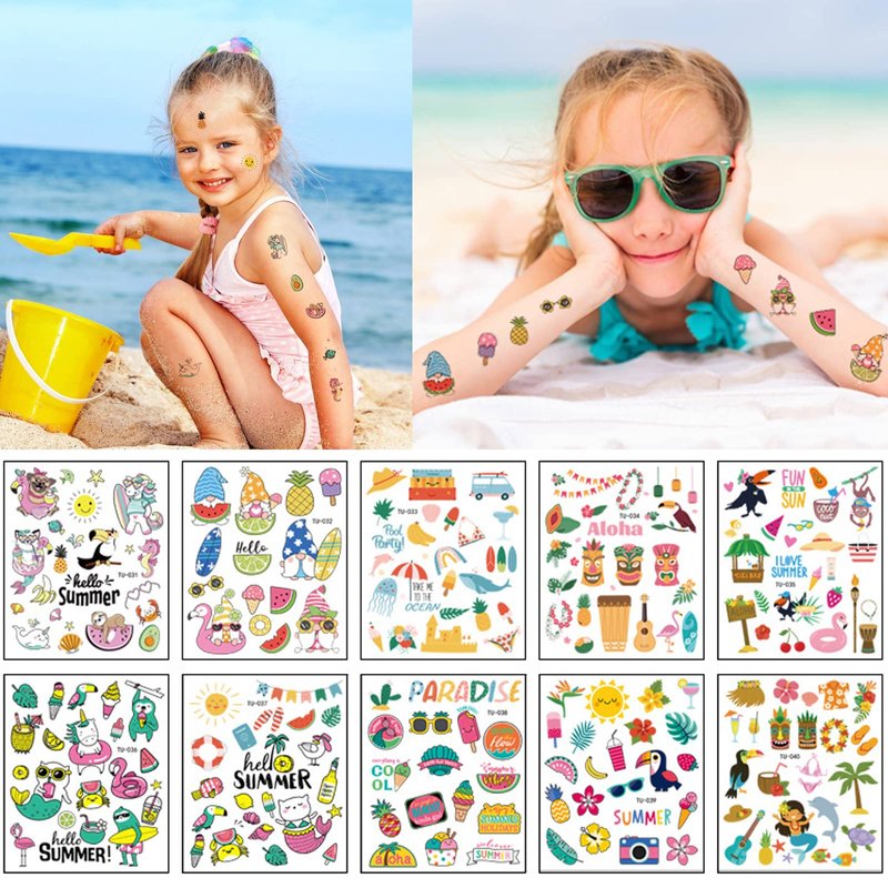 - PACKAGE INCLUDES: You will receive 10 sheets of cute vibrant summer tattoo stickers with about 200 patterns in total. The numerous patterns and sufficient quantity are popular with kids and adults alike, perfect for your own DIY use or to share with others.
