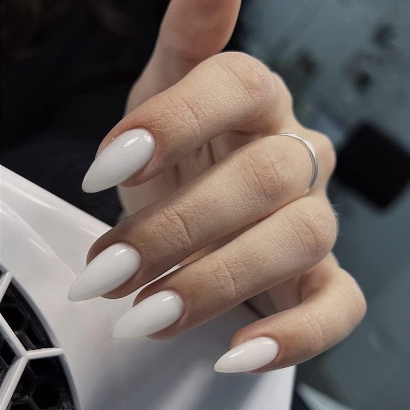 Summer White Almond Shaped Nails,Press-on Nails KXAMELIE Glue on Nails Almond for Women,Acrylic Nails Press on Medium Length Stick on Nails for Women Girls Daily Work Wear, 1.0582 Ounce