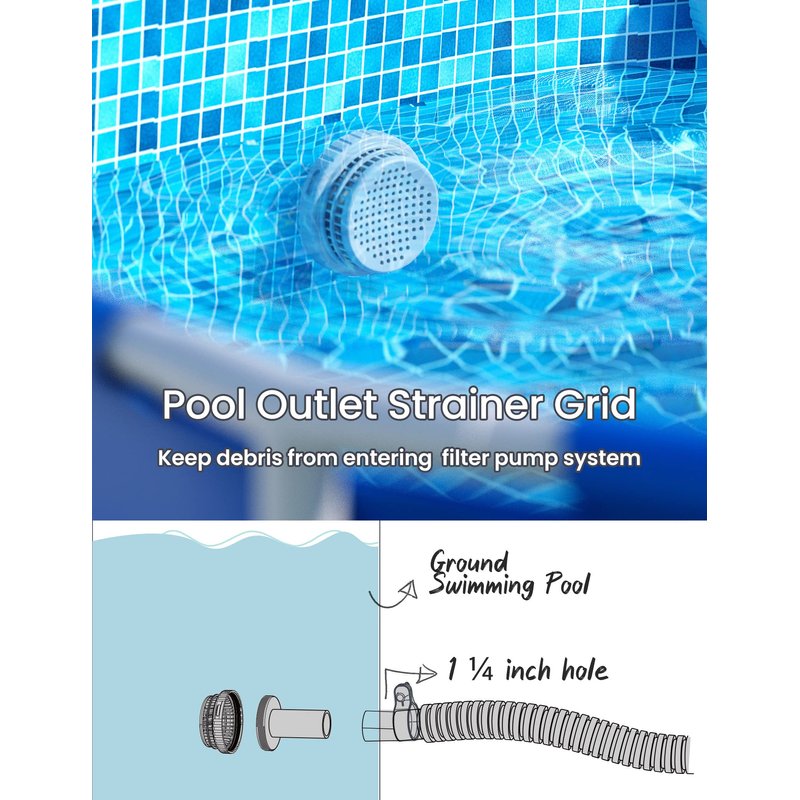 - 【All In One Kit】The replacement pool parts kit include: 1* split hose plunger valve, 1* plunger valve, 2* strainer grids for 1.25-inch pool fitting, 1* inlet water nozzle for 1.5-inch pool fitting.