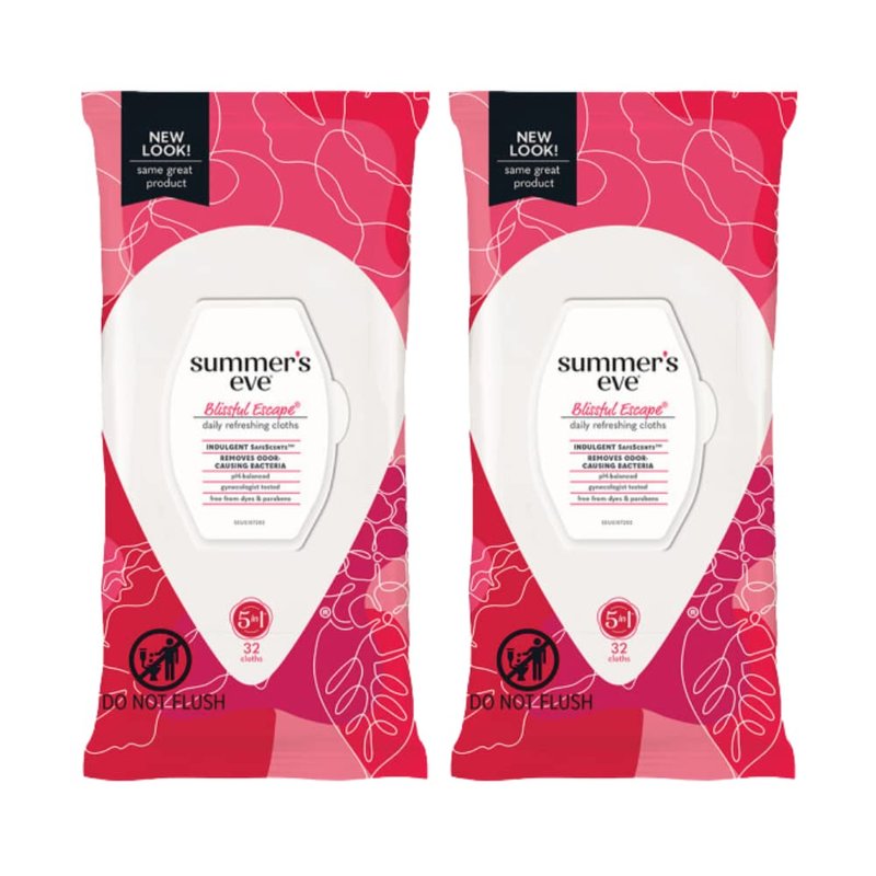 - Summer’s Eve Blissful Escape Daily Refreshing Feminine Wipes removes odor-causing bacteria