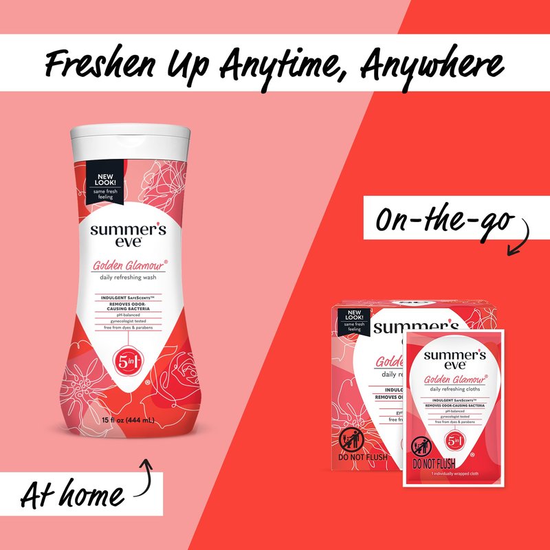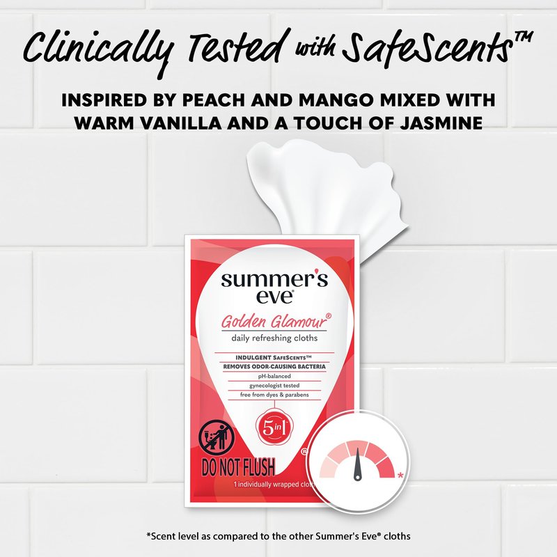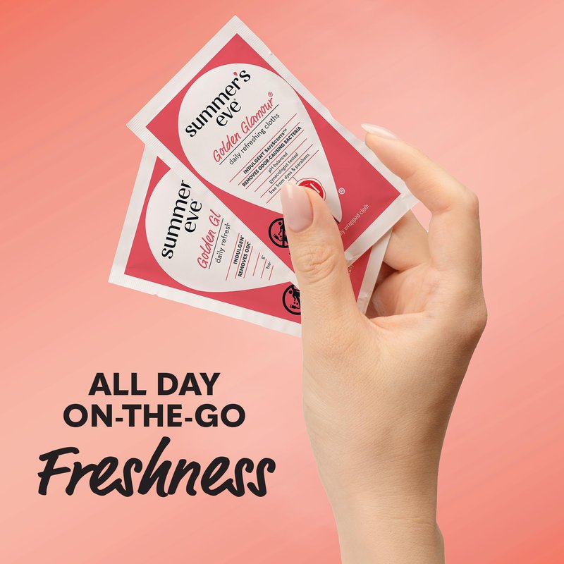 - Summer's Eve Golden Glamour daily feminine wipes remove odor