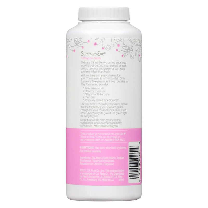 - Only Summer's Eve gives you 5 fresh benefits in 1 lightly scented powder. 5 ways to fresh for ordinary things like - crossing your legs, working out, getting your period, or even getting up close and personal can leave you feeling less than fresh.