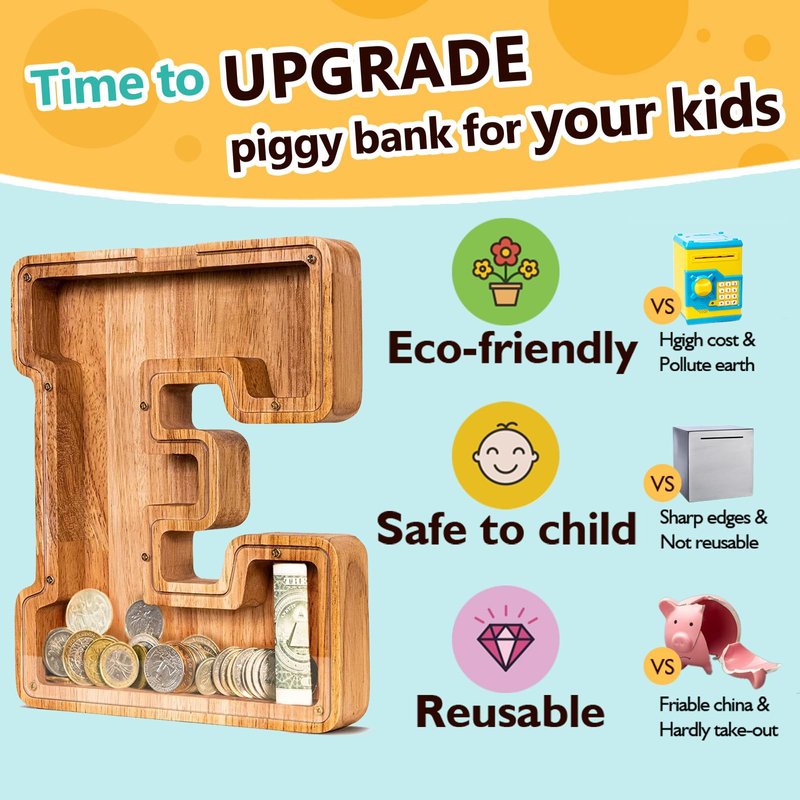 - 👍PREMIUM IN QUALITY & AFTER-SALE SERVICE - We take pride in the quality and originality of our wooden letter piggy bank piggy banks for adults and kids, which is why they come with a satisfaction guarantee to ensure your total happiness.