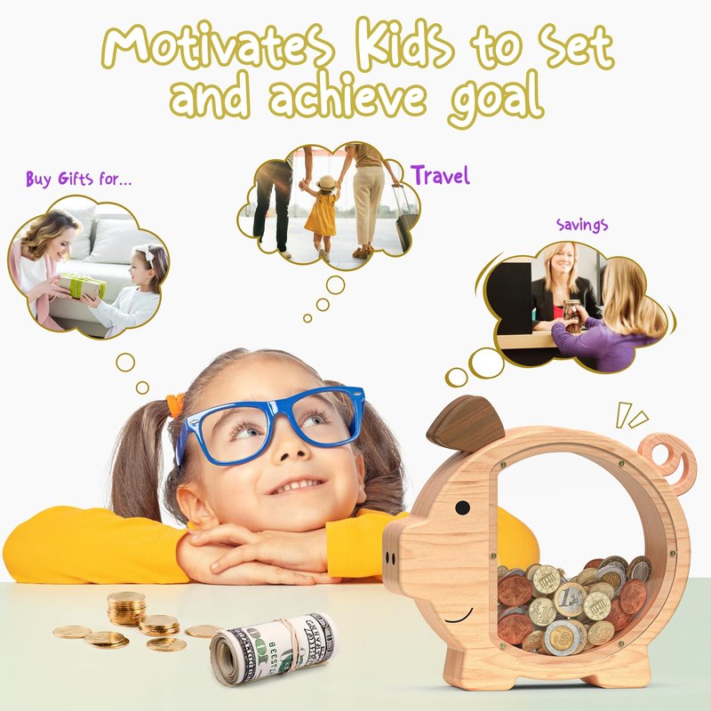 - 💝【Enjoy Saving Money&Educational Toy】: Our wooden money bank is reusable and durable. Kids can observe the growth of saving money through the clear acrylic windows for the money box. If you want to extract the money, just unscrew the screws.