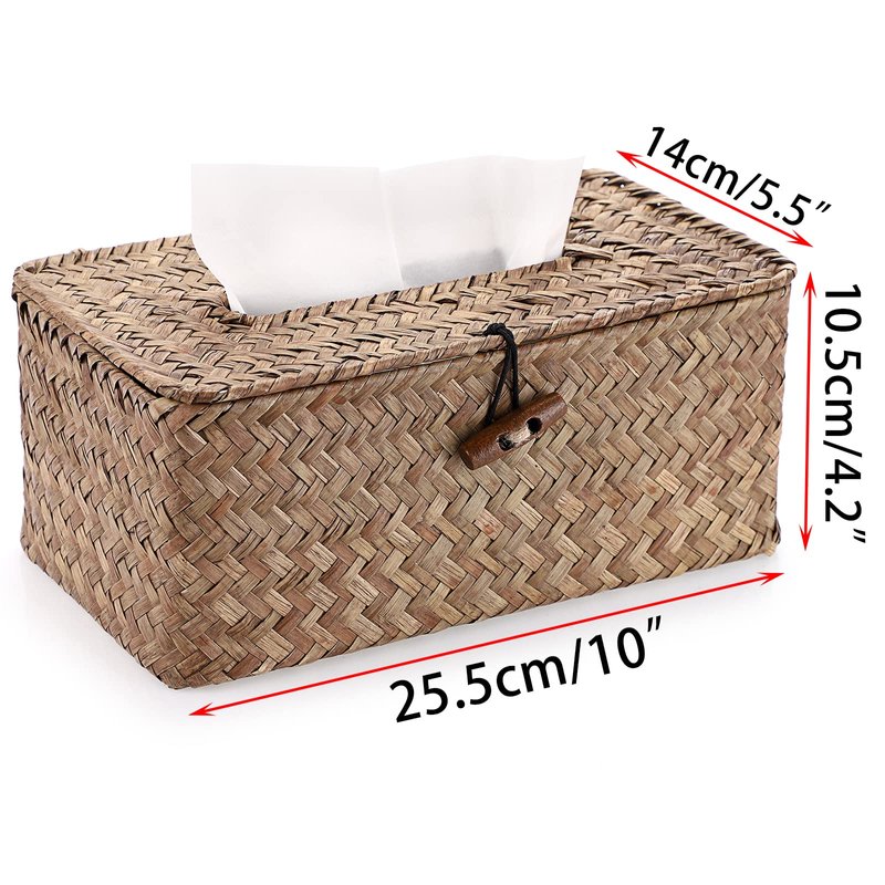 - The woven tissue box holder is designed with elastic loop buckle as the closure, it's convenient for you to add or remove tissues and secured shut to keep the tissues safely inside,