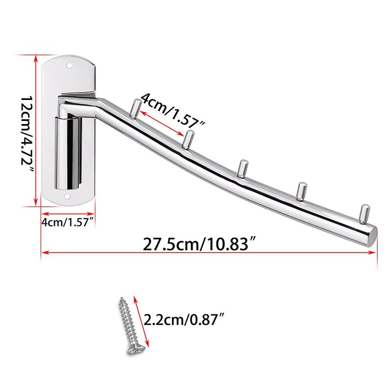 Sumnacon Wall Mounted Clothes Hanger Rack, Stainless Steel Garment Hooks with Swing Arm Holder, Space Saver Coat Robe Storage Organizer for Laundry Room Bedrooms, Clothing Drying Rack with 5 Hooks
